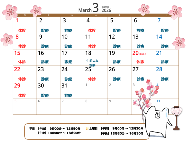 診療時間:9:00~12:50/14:00~18:00
