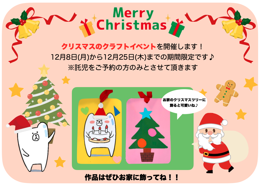 クリスマスのクラフトイベントを実施します!